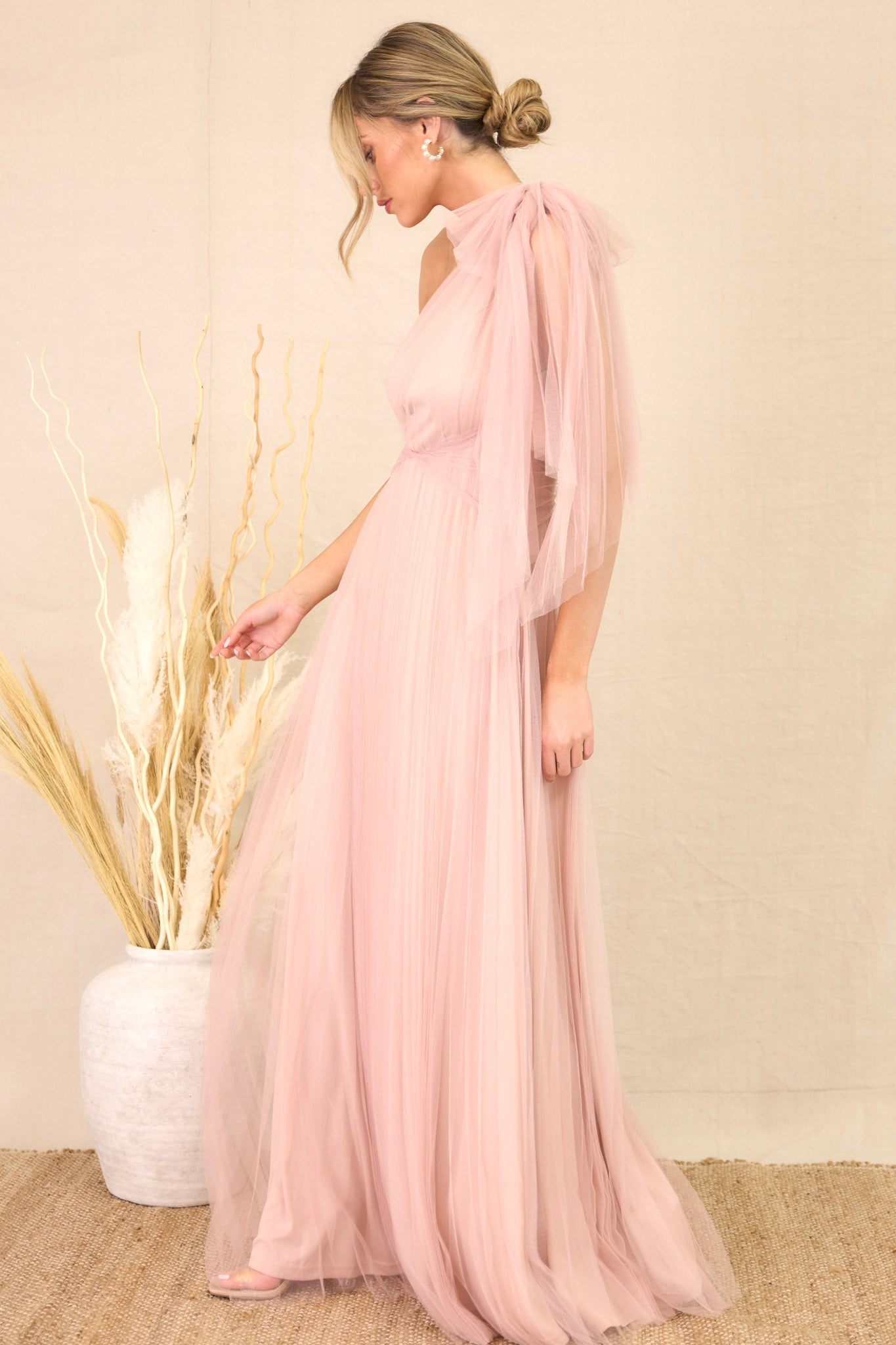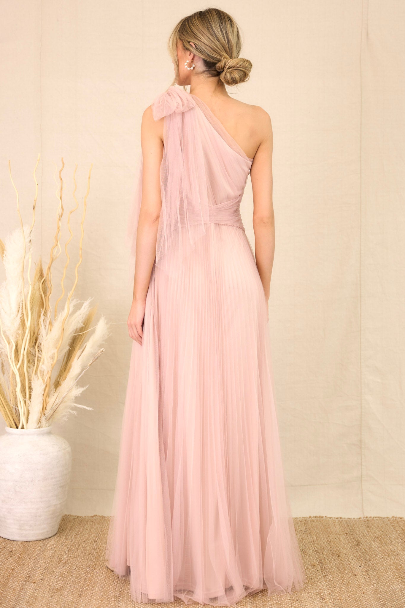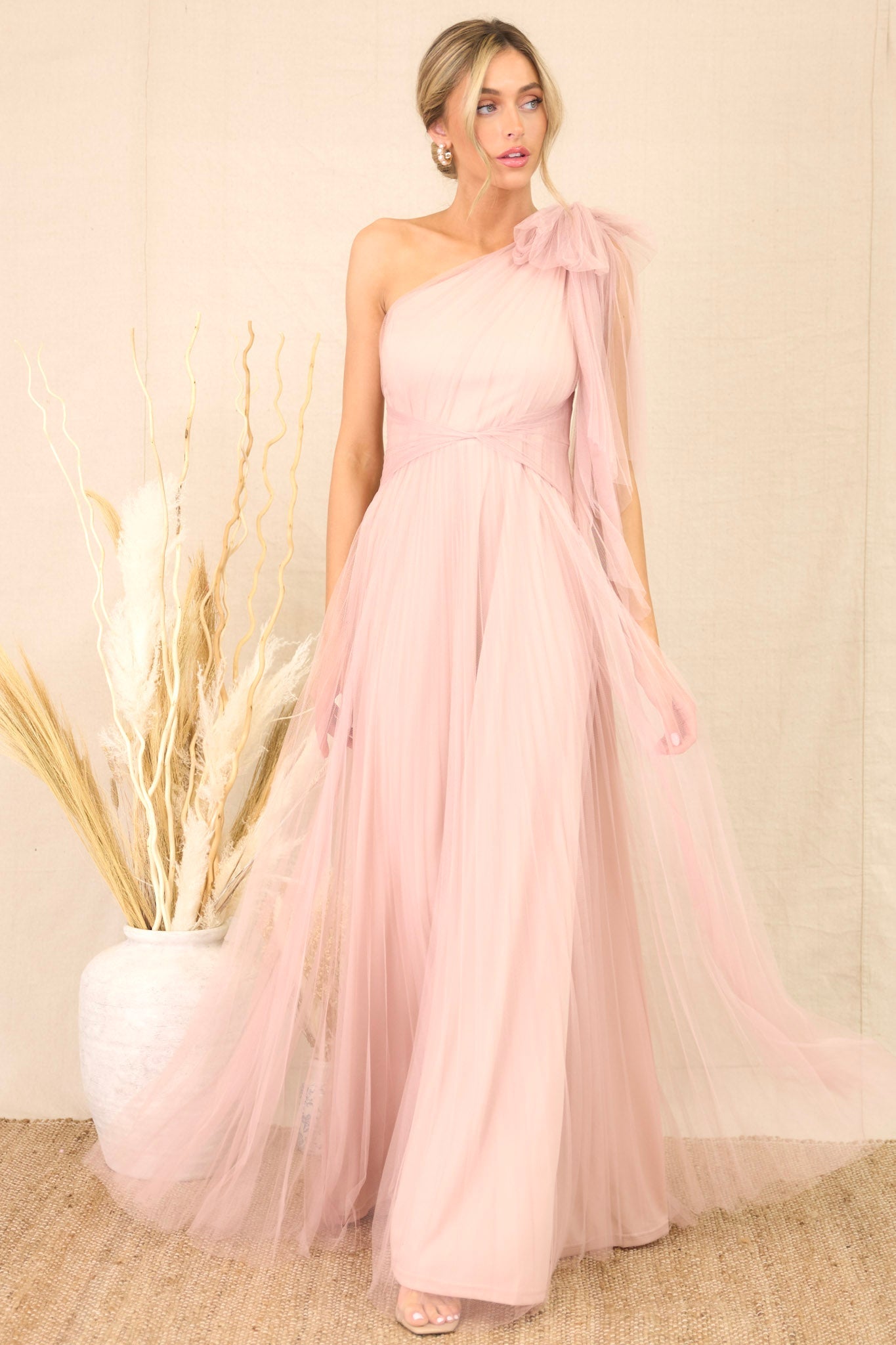 Flow through the universe with complete confidence in this Divine Intuition Blush Maxi Dress! Boasting a stylish design, you'll find yourself feeling (and looking) out of this world. Turn heads and let your intuition lead the way! This dress features an asymmetric neckline, fabric trailing from the shoulder, twisted detailing in the waist, and pleated tulle throughout.