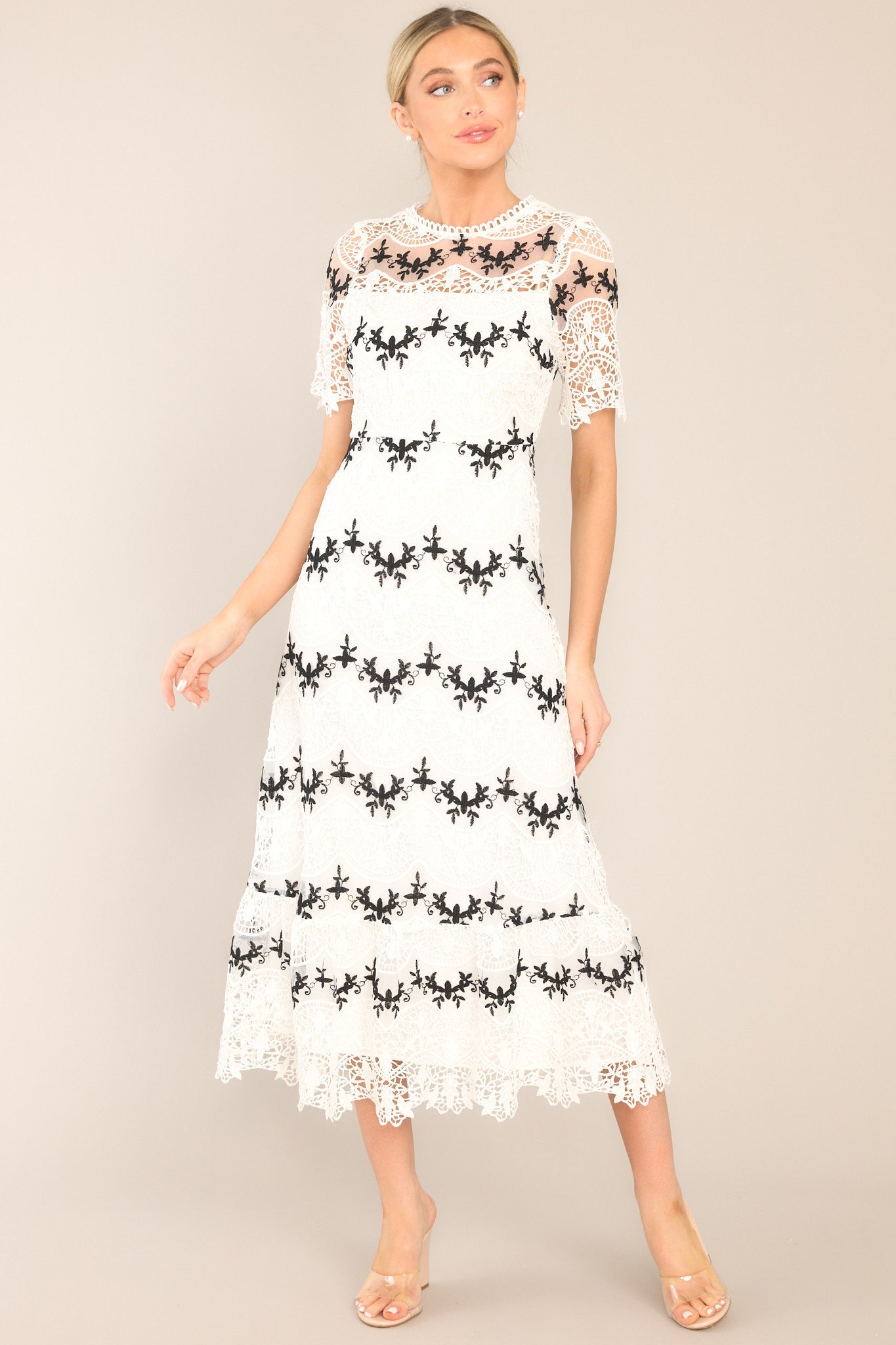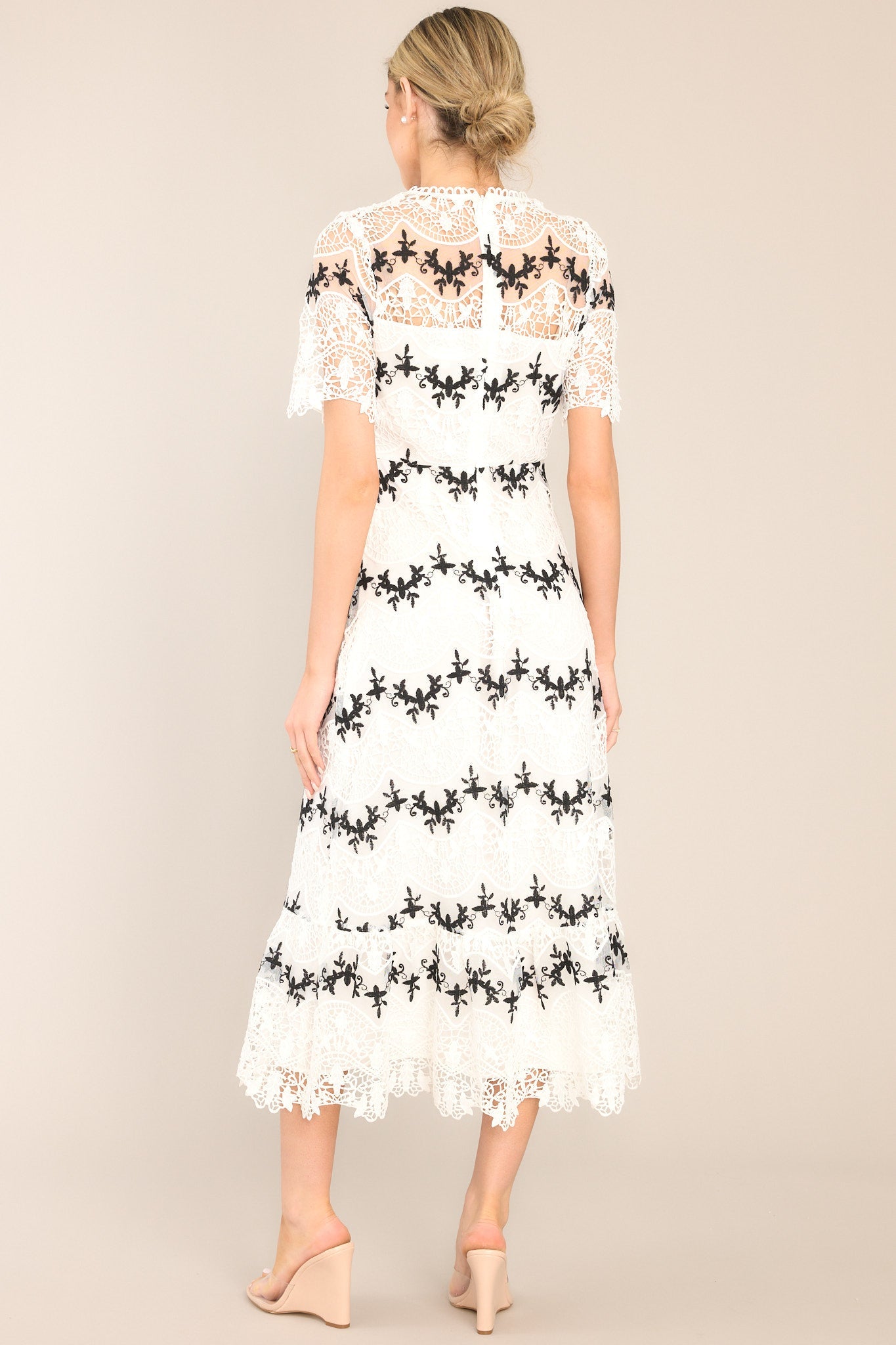 Have your own fairytale when you wear this elegant Fairytale Beginnings White Lace Midi Dress. Your Prince Charming won't be able to resist you. Honestly, you are simply angelic in this beauty. This white lace dress features a round neckline with lace detailing, alternating embroidered mesh and lace panels, short sleeves, a functional zipper at the back of the bust, and an ankle-length skirt.
