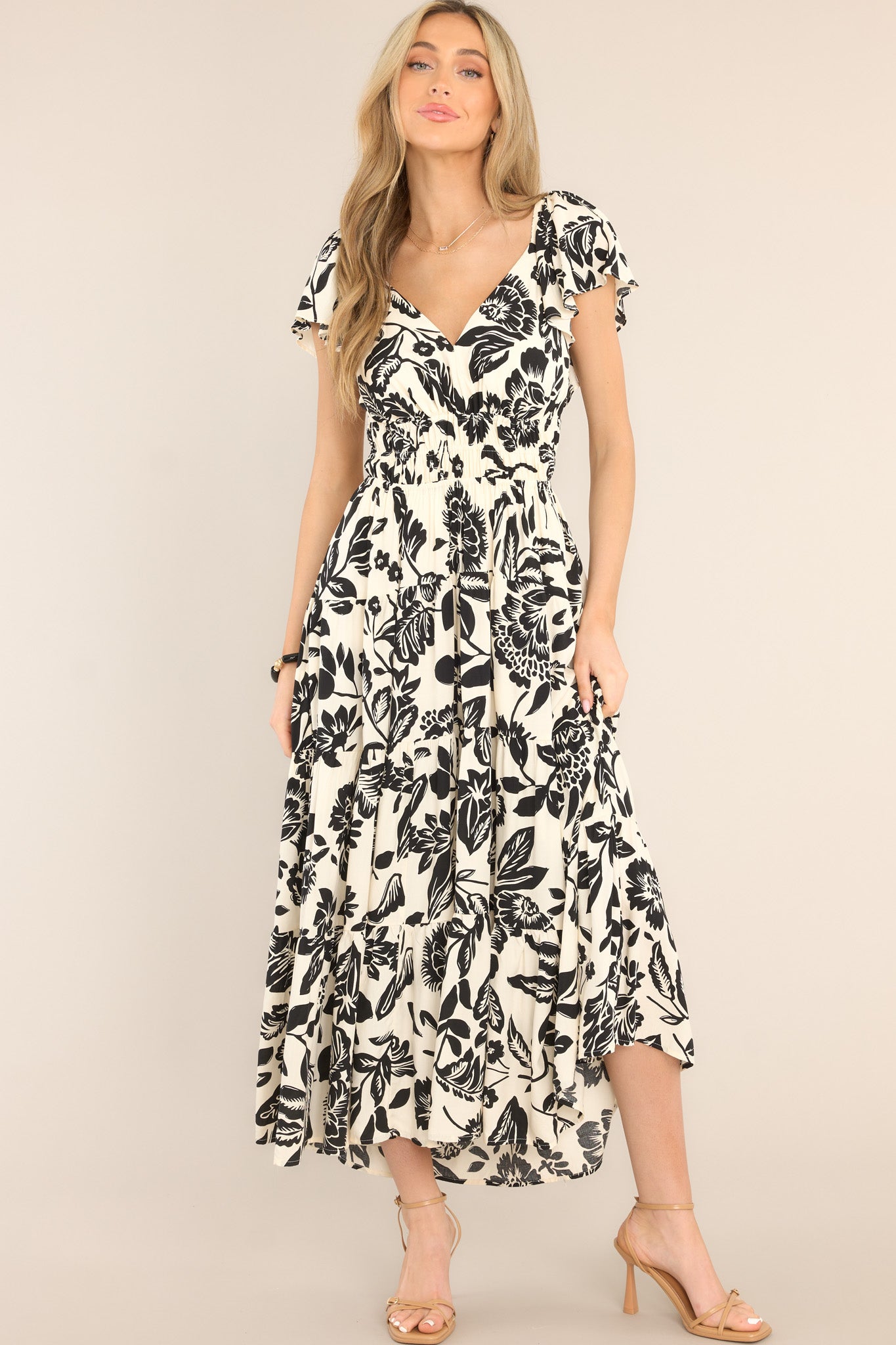 Make a statement in our One By One Black & Ivory Maxi Dress. The contrast of black and ivory create a flattering, eye-catching look. With its flowy silhouette, this dress is perfect for most body types. Get ready to turn heads and stand out from the crowd! This dress features a v-neckline, a smocked insert, an open lower back, functional pockets, a tiered design, and flutter sleeves.