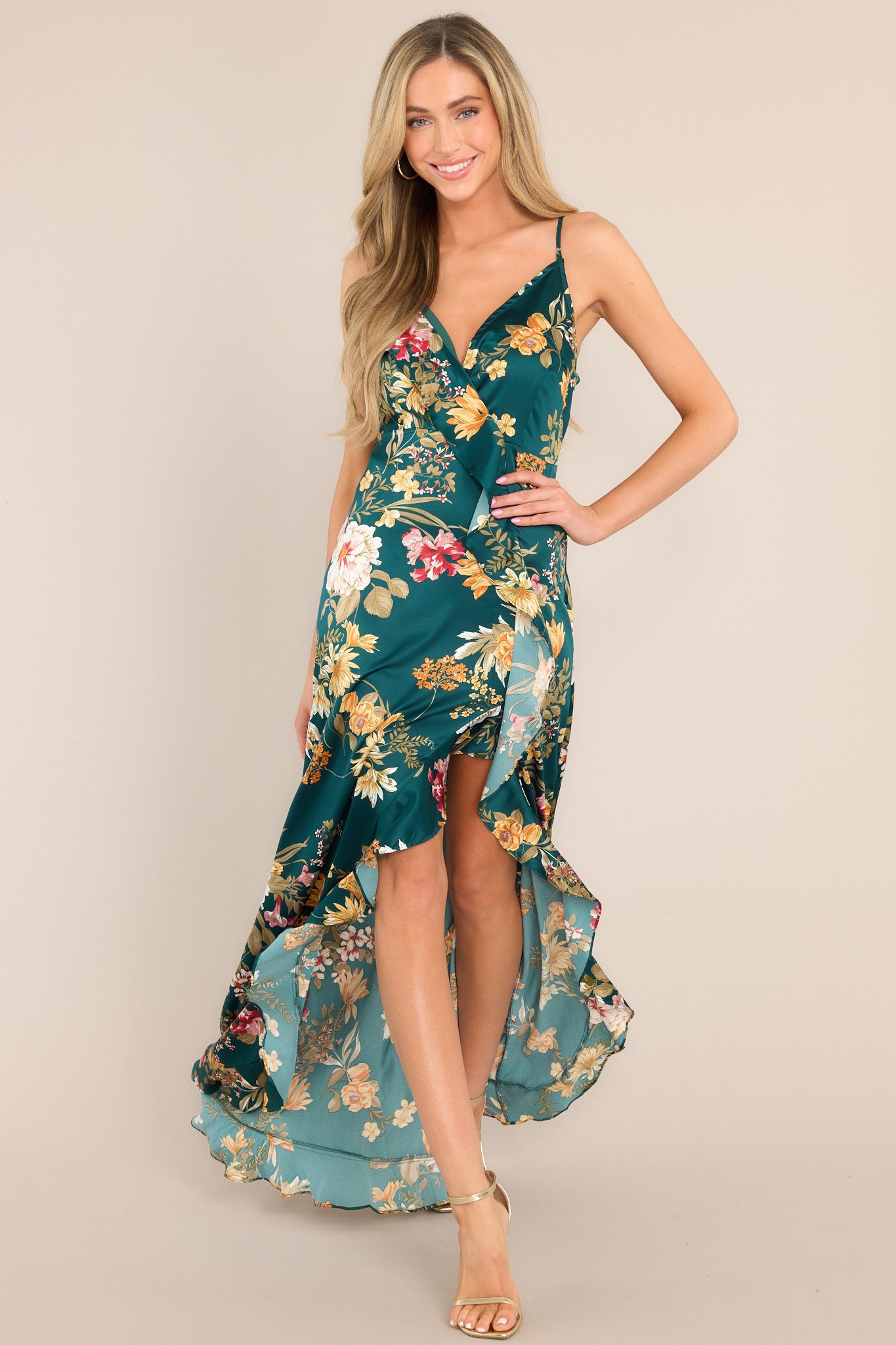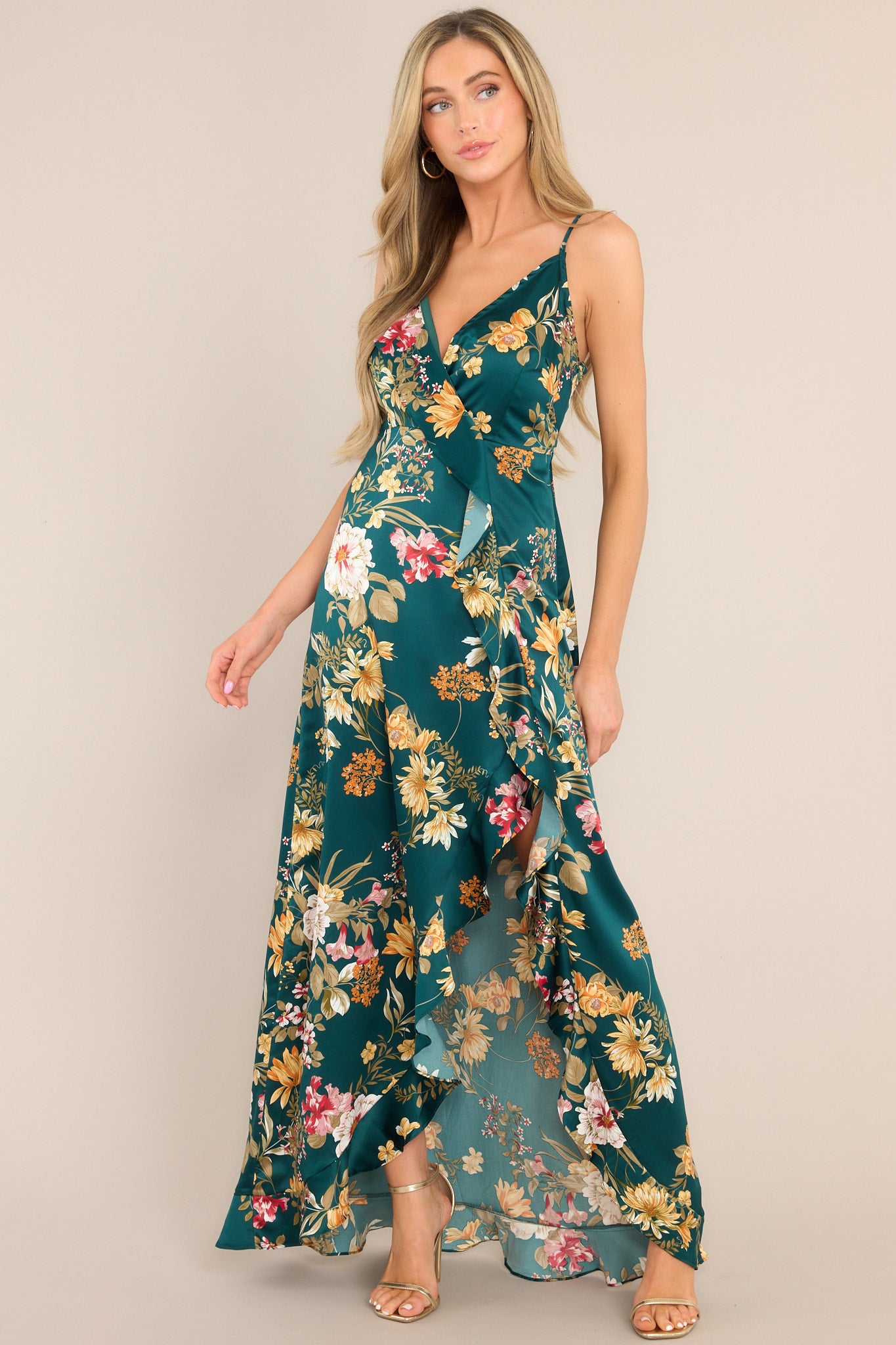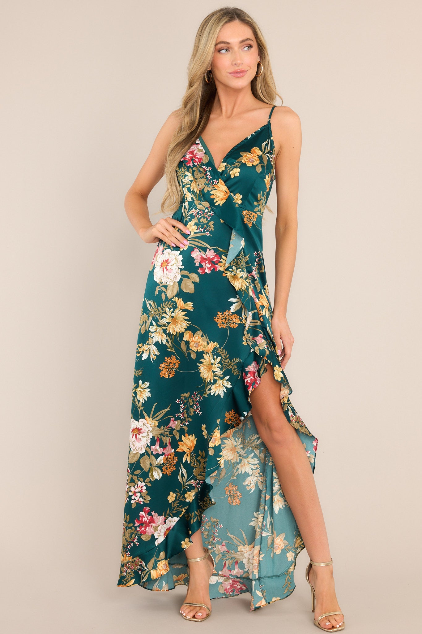 This Up To You Emerald Maxi Dress demands attention! Crafted with a flowy silhouette for added intrigue, this dress is sure to turn heads and inspire maximum compliments. A not-so-basic basic, this dress will make you the envy of all your friends! This dress features a v-neckline, adjustable straps, an open back, a functional side zipper, a faux wrap design, and a high slit.