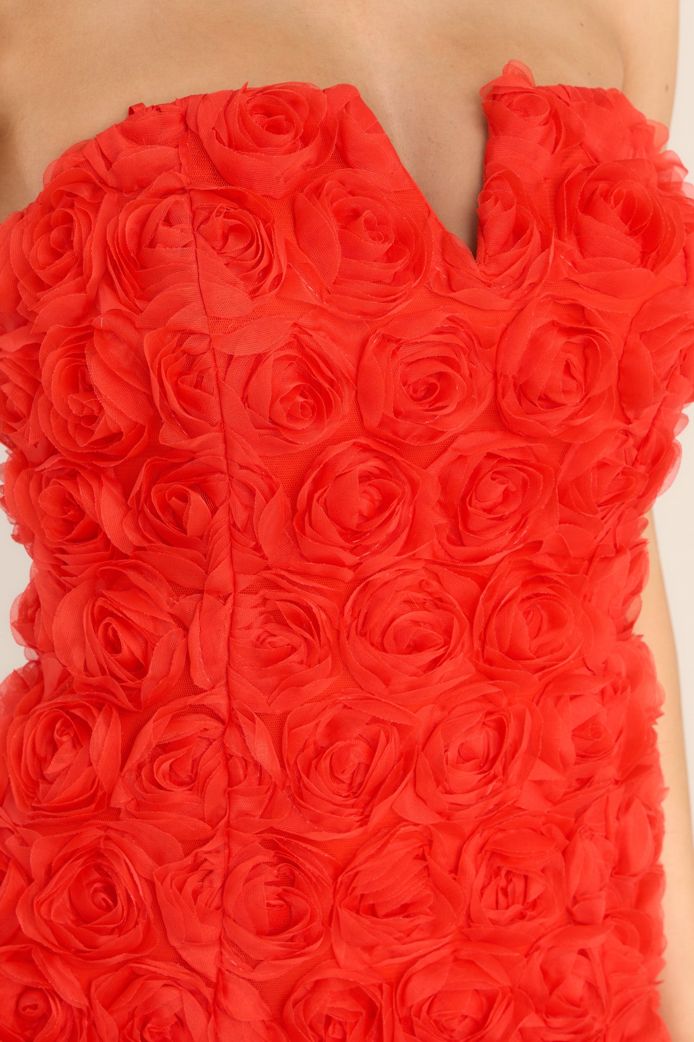 This flirty and fun dress is sure to get you Romantically Entangled! It's the perfect garment for any party, date night, or dinner out on the town. Get ready to fall head over heels in love with this dress! This dress features a strapless design with a v-cutout, a zipper and hook closure at the back of the bodice, and delicate, fabric roses throughout.